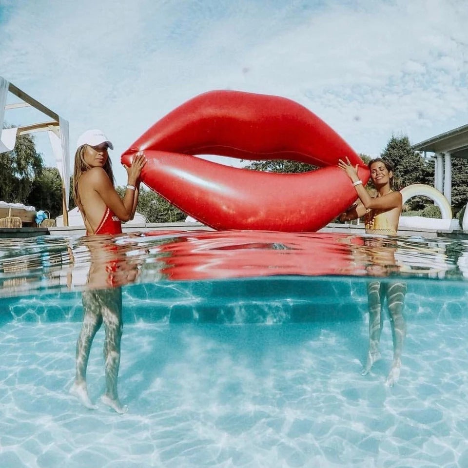 Material: Environmental protection PVC PVC thickness: 0.26 (mm) pattern: plain Inner diameter after inflation: 110cm red lips swimming ring (bag)